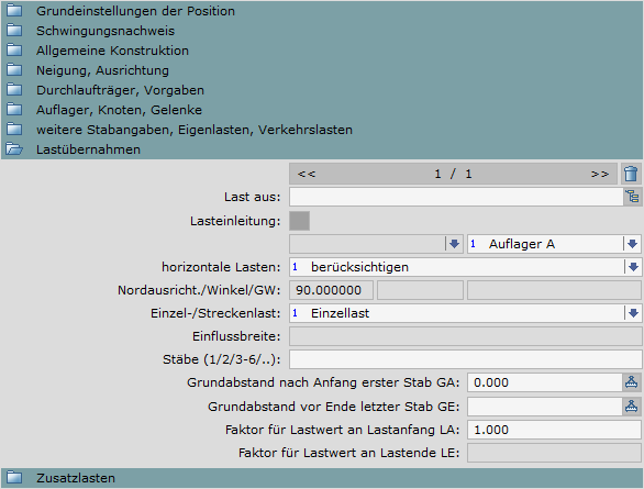 Lastübernahmen kannst Du als Einzellasten und Streckenlasten erzeugen.