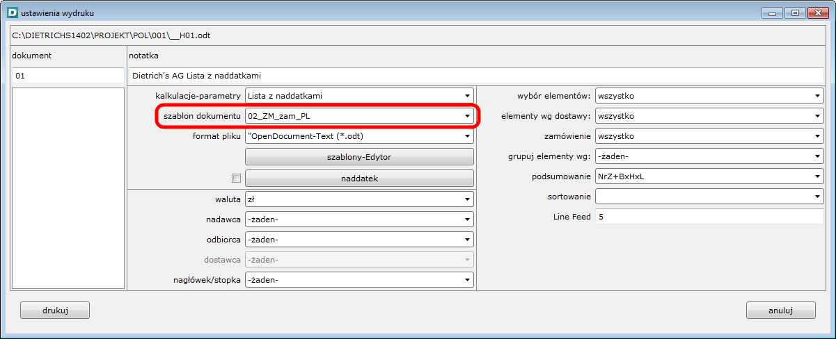 Wiele osób zastanawia się nad możliwością wpływania na wygląd drukowanych przez siebie zestawień materiałów czy przedmiarów. Odpowiedzią na to pytanie jest wybór odpowiedniego szablonu dokumentu lub [*stworzenie własnego*](https://docs.dietrichs.com/dietrichs-intelligent-documentation/docs-pol/projekt-3d-cad_cam/konstruktionsprogramm_projekt-3d-cad_cam/baudatenprogramm_d-baza/personalizacja-szablonu-zestawienia).