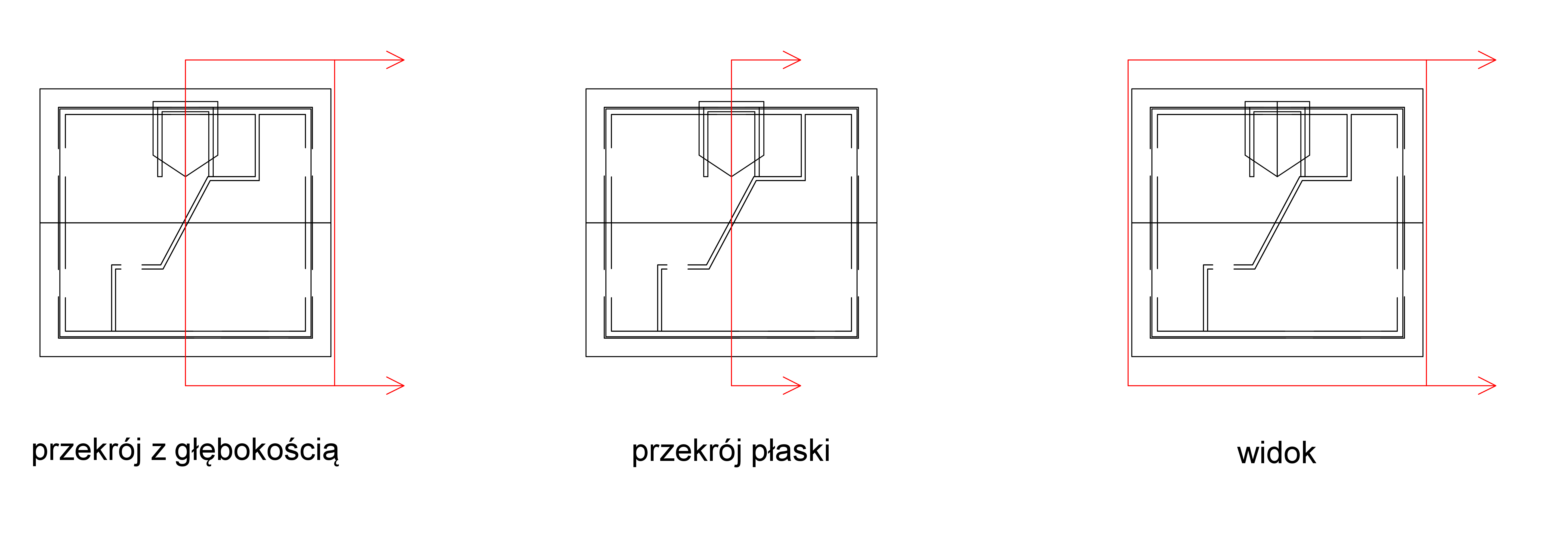 przekrój płaski – jest to typ przekroju nie posiadający głębokości, w którym wyświetlane są jedynie linie znajdujące się w płaszczyźnie cięcia.