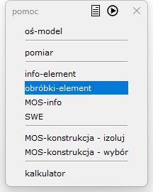 * **nowa** – pozwala dodać nową, dowolną obróbkę do elementu, z listy dostępnych makr obróbczych