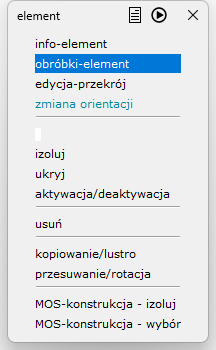 # Okno obróbki – element