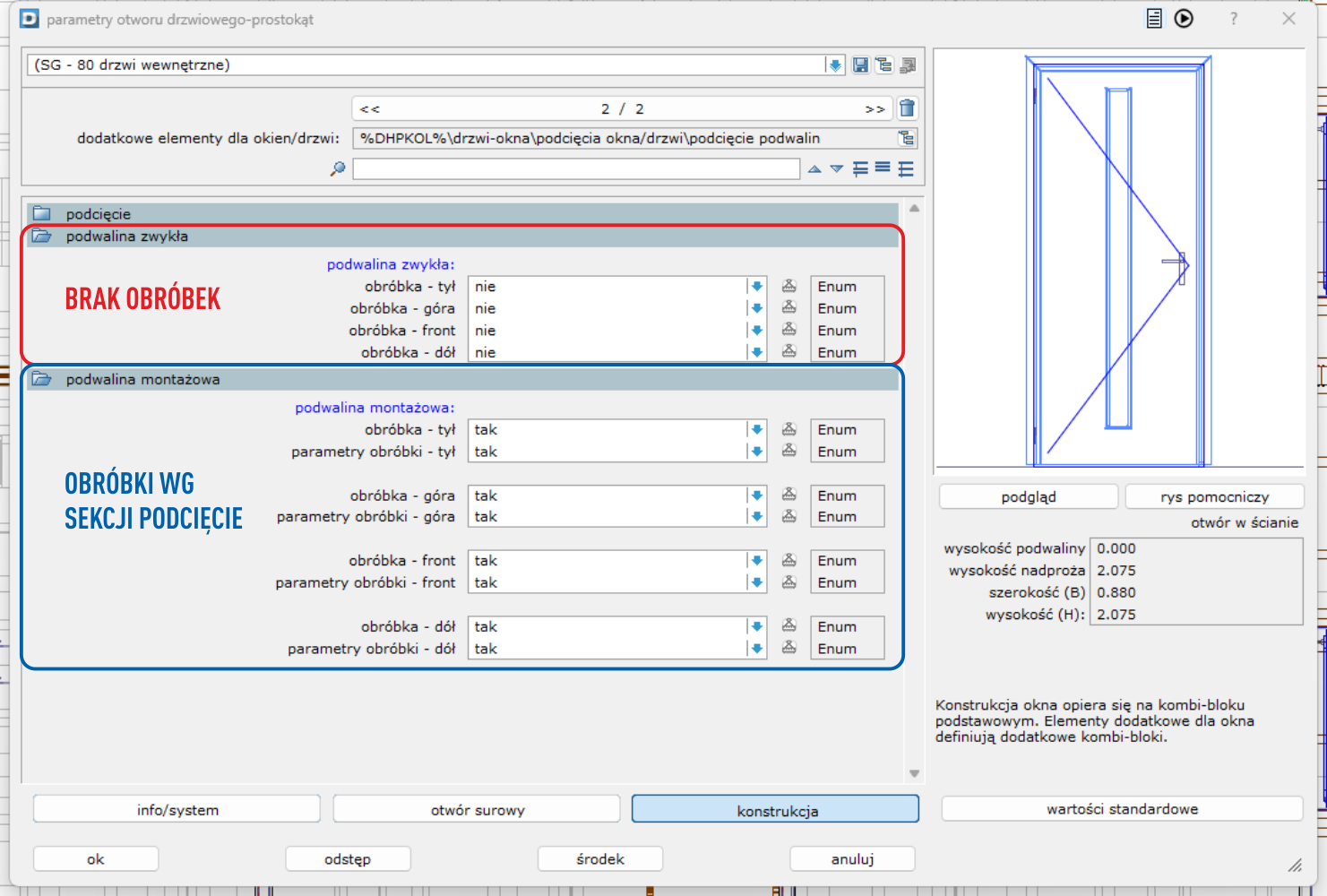 ![Okna, drzwi podcięcie podwalin - parametry domyślne podcięć](https://3407883257-files.gitbook.io/~/files/v0/b/gitbook-x-prod.appspot.com/o/spaces%2FYMzEDBs19APCTuiyQZE1%2Fuploads%2Fgit-blob-cfe1efbb47b0f40d91abe0c1a52ae7141e0dc936%2FPT_10.png?alt=media)