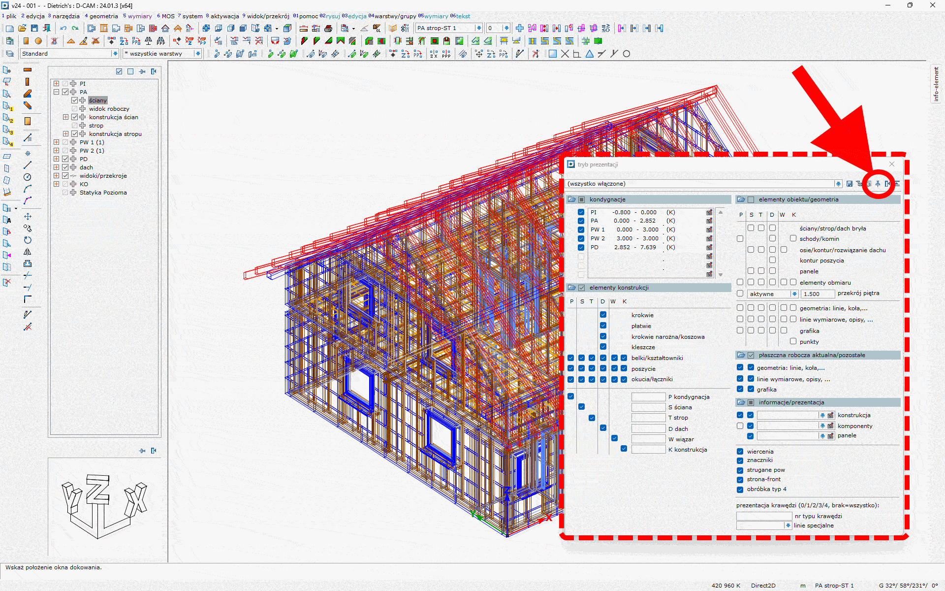 Od wersji 23 wprowadzono całkowicie nowy system zarządzania wyświetlaną treścią modelu. Nowy tryb prezentacji dostępny jest teraz w formie niezależnego okna z możliwością dokowania w obszarze roboczym.