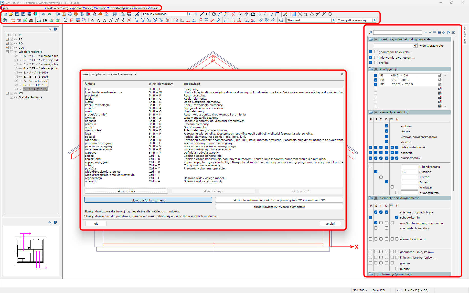 Tworzenie nowego przekroju można rozpocząć również w modułu dach i konstrukcja dachu, tak jak w poprzednich wersjach programu. Polecenie 9-8 widok/przekrój - nowy