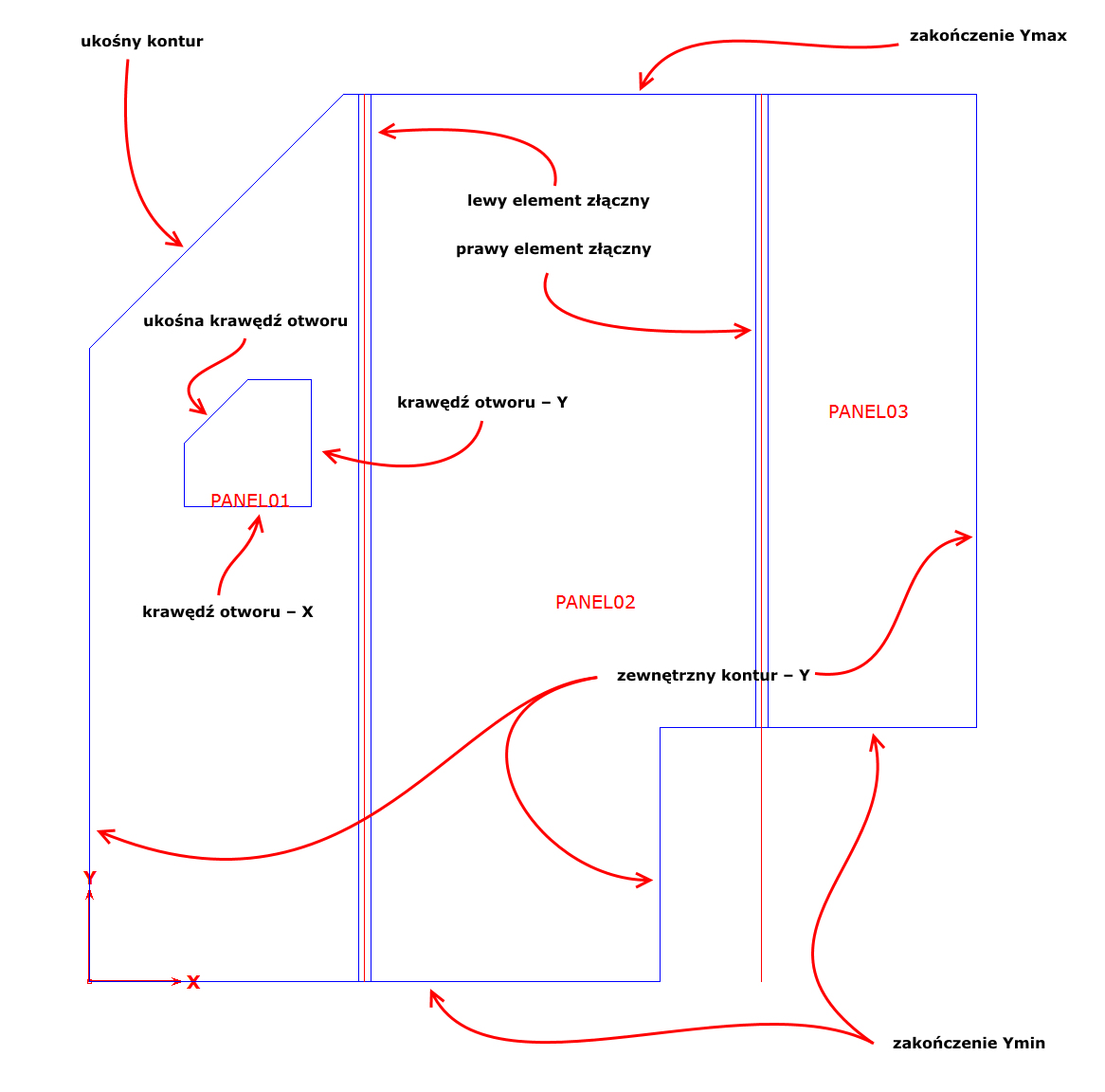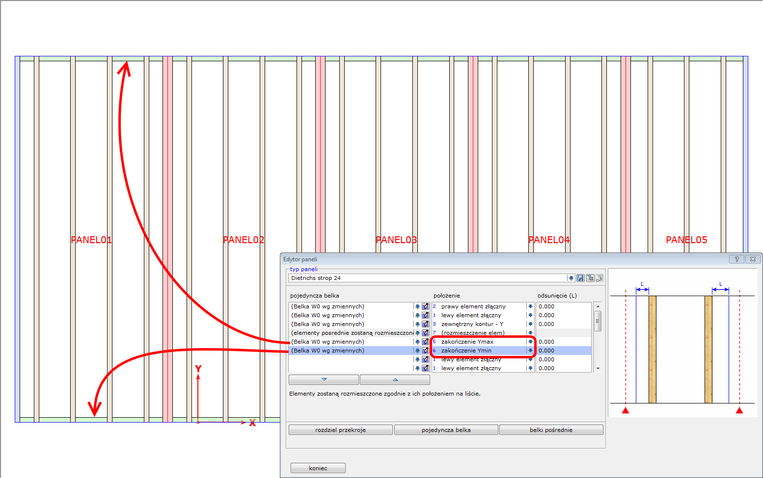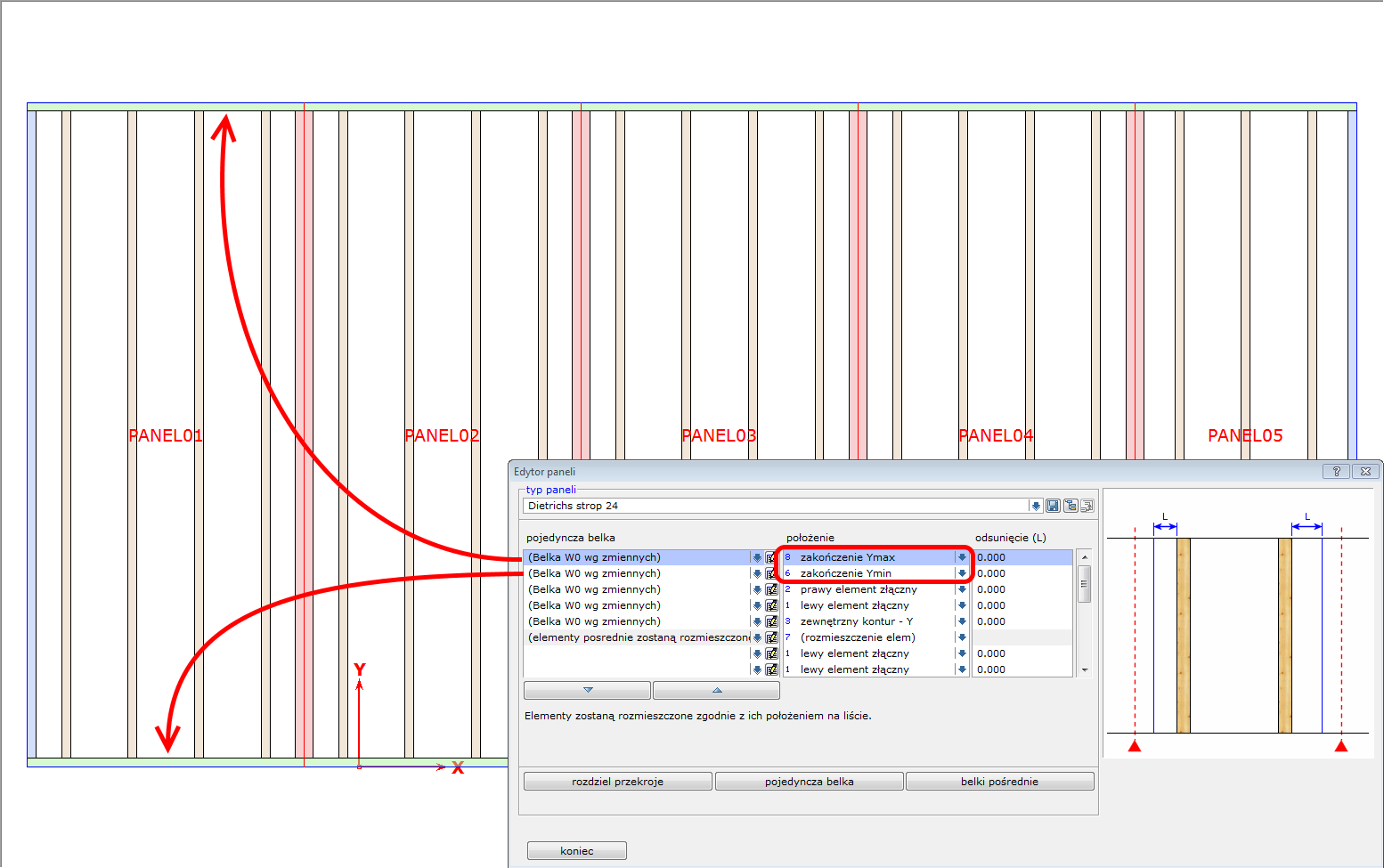 Przykład nr 1 - Czoła paneli z zamkniętymi belkami stropowymi