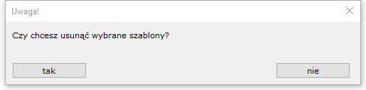 Definicja nowego szablonu wymaga podania nowej, niepowtarzalnej nazwy. Podanie nazwy pliku identycznej, z już występującą spowoduje pojawienie się komunikatu ostrzegającego o nadpisaniu istniejącego szablonu.