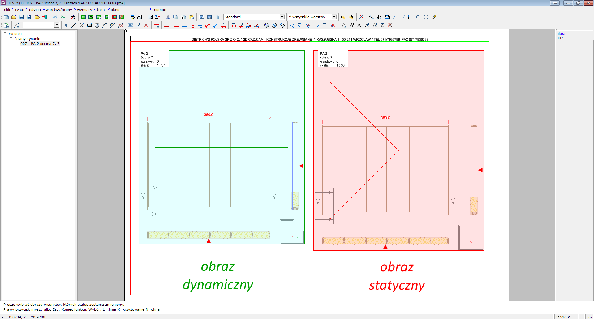 Pojęcie rysunku dynamicznego zwią­zane jest ze statusem obrazu wstawio­nego do rysunku. Przewidziane zo­stały dwie możliwe opcje. Obraz może mieć status dynamiczny lub statyczny. Od niego zależy czy dany rysunek może zostać zaktualizowany czy nie.