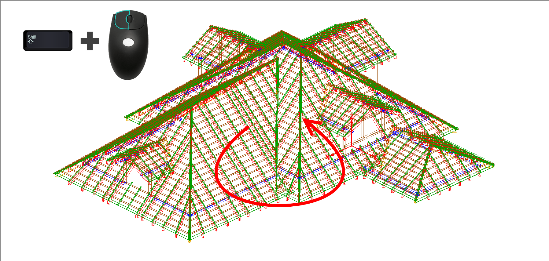 Od wersji **14.03** systemu Dietrich's możliwe jest obracanie trójwymiarowym modelem konstrukcji w trakcie realizacji dowolnej funkcji. To ogromne ułatwienie podczas pracy z duża ilością elementów w widoku.