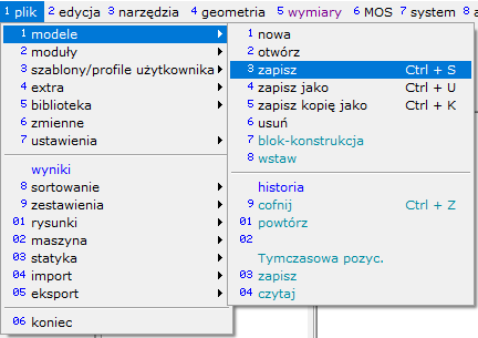 Dostępna w każdym oknie programu i w każdym module projektowym. Wywołuje ją projektant w wybranym przez siebie momencie. Zapisuje bieżący stan prac w plikach katalogu projektowego