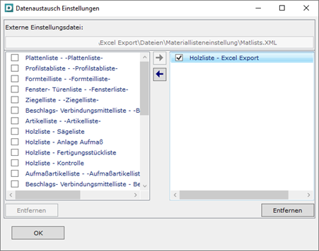 Haken bei Holzliste-Excel Export setzen und per Pfeil in die aktuellen Einstellungen kopieren.