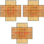Für die Nagelung von Latten kann man zwischen 1 Nagel, 2 Nägeln und 3 Nägeln unterscheiden. Diese werden automatisch erzeugt. Bei 1 Nagel und 2 Nägeln wird immer ein Nagel in der Mitte der Kontaktfläche zwischen Latte und Konterlatte erzeugt. Die beiden äußeren Nägel (bei 2 und 3 Nägeln) werden diagonal in den Ecken der Kontaktfläche erzeugt.