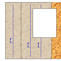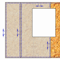 Nagelabstand an Öffnungen: Dies ist der maximale Abstand zwischen zwei Nägeln innerhalb einer Nagelreihe an Öffnungskanten. Der tatsächliche Nagelabstand wird so ermittelt, dass der eingegebene Wert nicht überschritten wird, aber auch am Ende der Nagellinie ein Nagel erzeugt wird. Die Kante wird in diesem Fall durch die inneren Lagenkonturen bestimmt.
