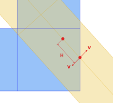 Verschiebung der Bohrung nach hinten: Die Sparrennagelbohrung kann auch nach hinten verschoben werden, damit der Nagel nicht mehr direkt auf die Pfettenkante trifft. Dies ist vor allem bei flachen Dachneigungen interessant. Der Abstand wird im Grund (globale XoY-Ebene) gemessen. Für die Eckkerven von Gratsparren siehe Bild oben.