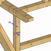 Mit der letzten Einstellung bestimmt man, wo die Eckpfosten mit ihrem unteren Ende angeschlossen werden sollen. Dies kann auf dem Brüstungsriegel oder auf dem Fußholz sein. Zusätzlich kann man die Eckpfosten automatisch auf der Oberseite der Beisparren anschließen. Auch hier ermöglicht die Eingabe eines Wertes auch eine beliebige andere Höhe.