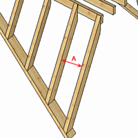 Über den 'Abstand Anfang' und den 'Abstand Ende' kann man den ersten und letzten Sparren mit einem festen Abstand zu den Feldgrenzen platzieren. Dazwischen werden die übrigen Sparren aufgeteilt. Die Aufteilung kann man wahlweise über ein festes Bundmaß, ein freies Bundmaß oder die Stabanzahl machen. Bei einem festen Bundmaß werden die Schrägsparren genau mit dem eingegebenen Abstand erzeugt. Ein eventuell entstehender Rest wird wahlweise im ersten Feld (Anfang), im letzten Feld (Ende) oder gleichmäßig in beiden Feldern (Aufteilen) eingefügt. Bei dem freien Bundmaß werden die Schrägsparren mit gleichem Abstand so erzeugt, dass maximal der eingegebene Abstand zwischen den Schrägsparren entsteht. Auch bei Eingabe der Sparrenanzahl entstehen automatisch gleiche Abstände zwischen den Sparren.